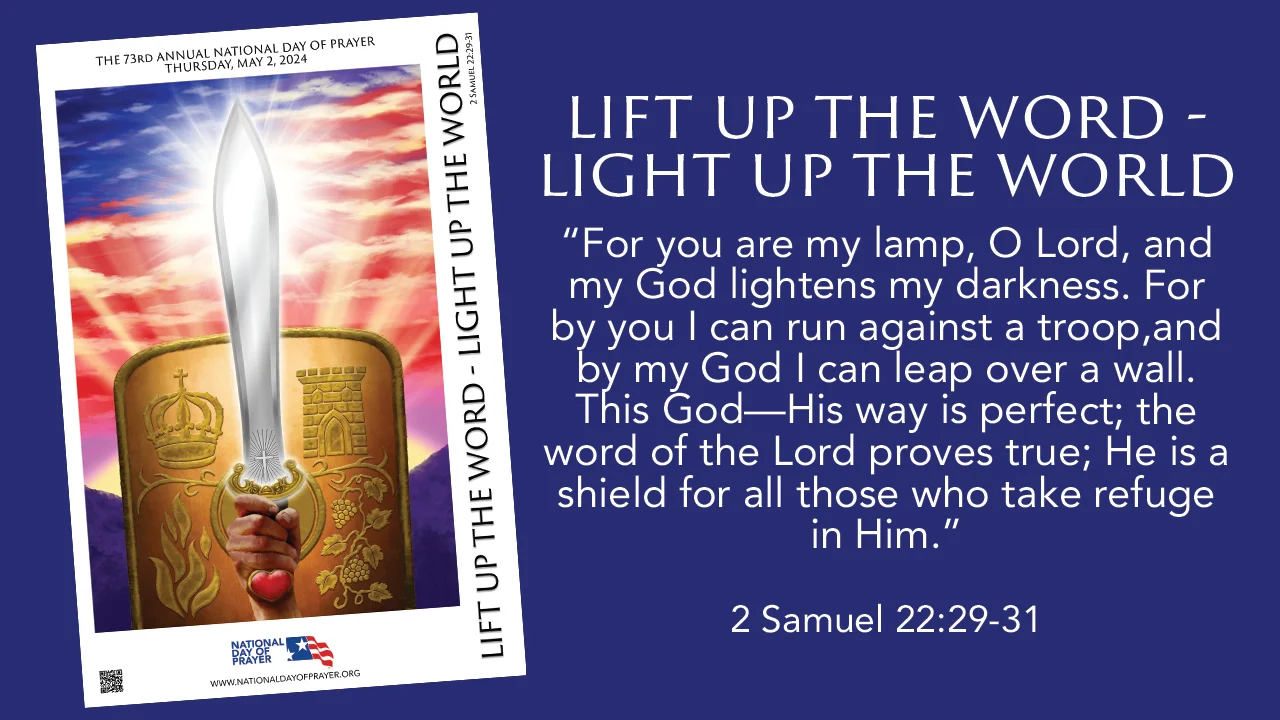May 2, 2024 – Theme: LIFT UP THE WORD LIGHT UP the World! 2 Samuel 22: 29-31 Amplified 29“ For You, O LORD, are my lamp; The LORD illumines and dispels my darkness. 30“ For by You I can run upon a troop; By my God I can leap over a wall. 31“ As for…